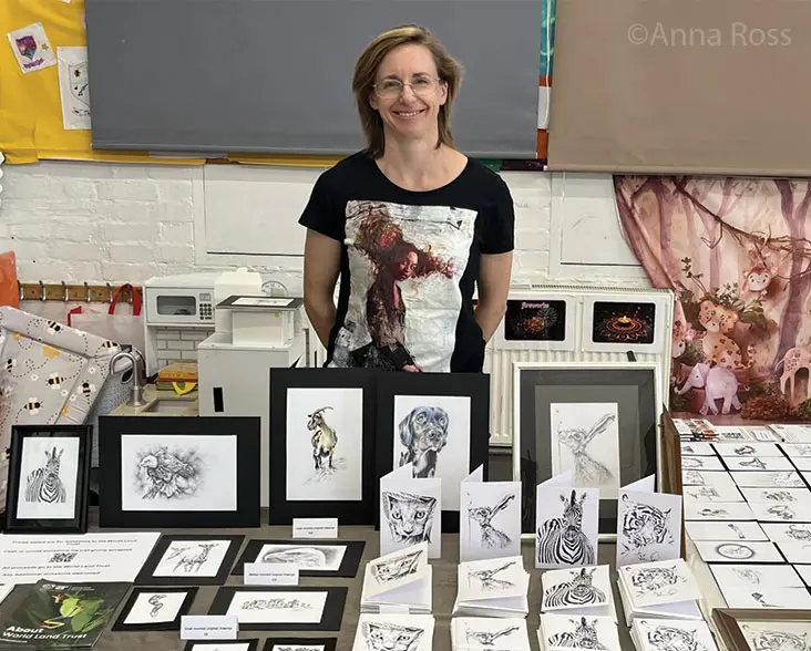 She showcased her work at the Borough of Ealing Art Trail and enjoyed speaking with visitors about her art and the projects she is supporting with her art. Her pieces have reached an audience well beyond the UK, with international customers and commissions.