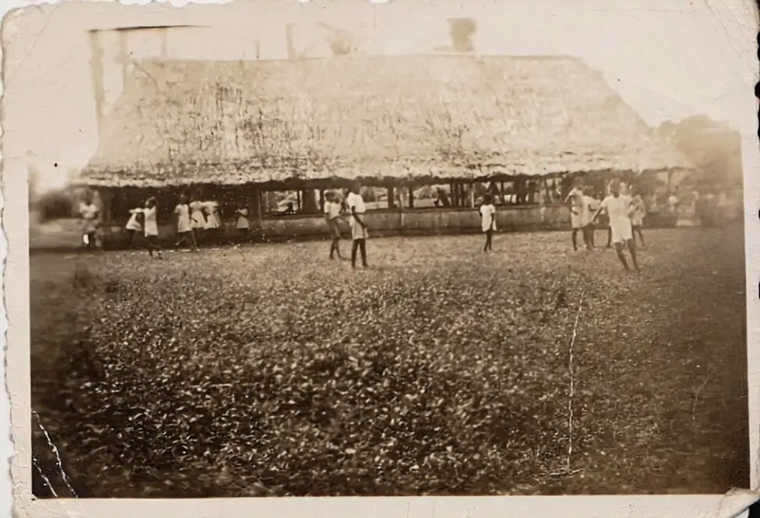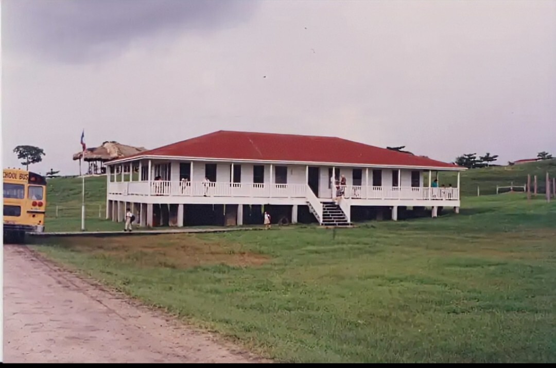 A photograph of Gallon Jug school in 1993. If you scroll back up, you can see the contrast with its thatched predecessor in 1948. With many thanks to Hilary for providing this.