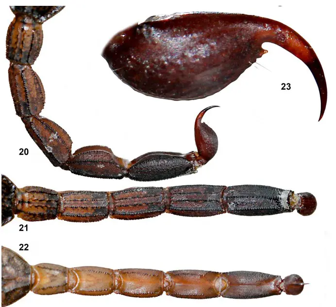 Up close: The identification of the new species required detailed analysis of all aspects of the scorpions’ body form or ‘morphology’. Image taken from Luis F. de Armas & Alex M. Cubas-Rodríguez (2025). Credit: Luis F. de Armas & Alex M. Cubas-Rodríguez