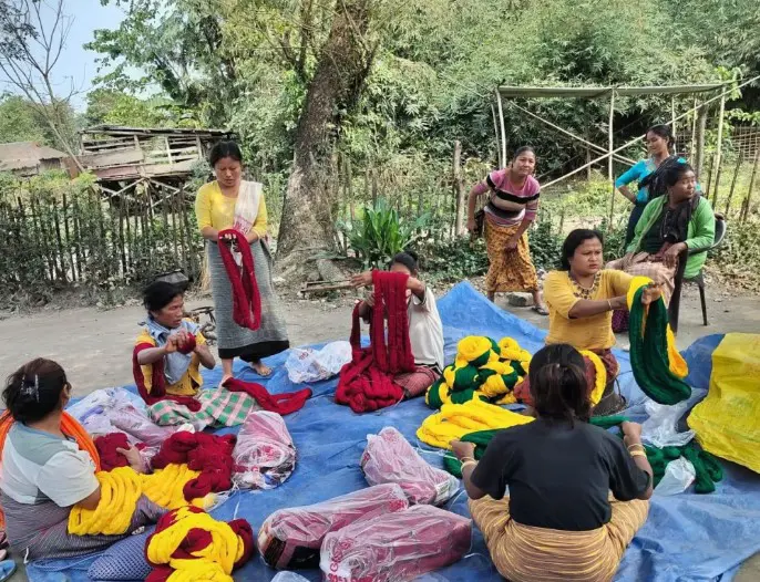 In 2025, WTI distributed seven quintals of yarn (equivalent to 700 kg) to 120 women from 30 groups within Mer and Paglam. This support aims to strengthen weaving as a sustainable source of income for the community. Credit: WTI