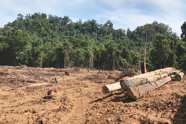 Deforestation at the border of Pangi Virgin Jungle Reserve, Malaysian Borneo. Image: Nina Seale