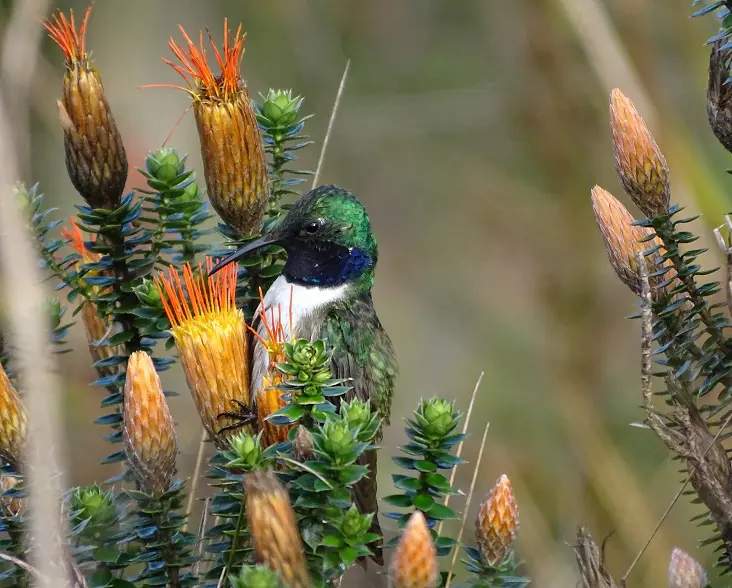 The habitat of the Blue-throated Hillstar is the páramo of the western Andes, an eco-region above the forest line but below the snow line. The páramo is home to many striking examples of Andean wildlife and because of its unique species it is referred to as an evolutionary hotspot.