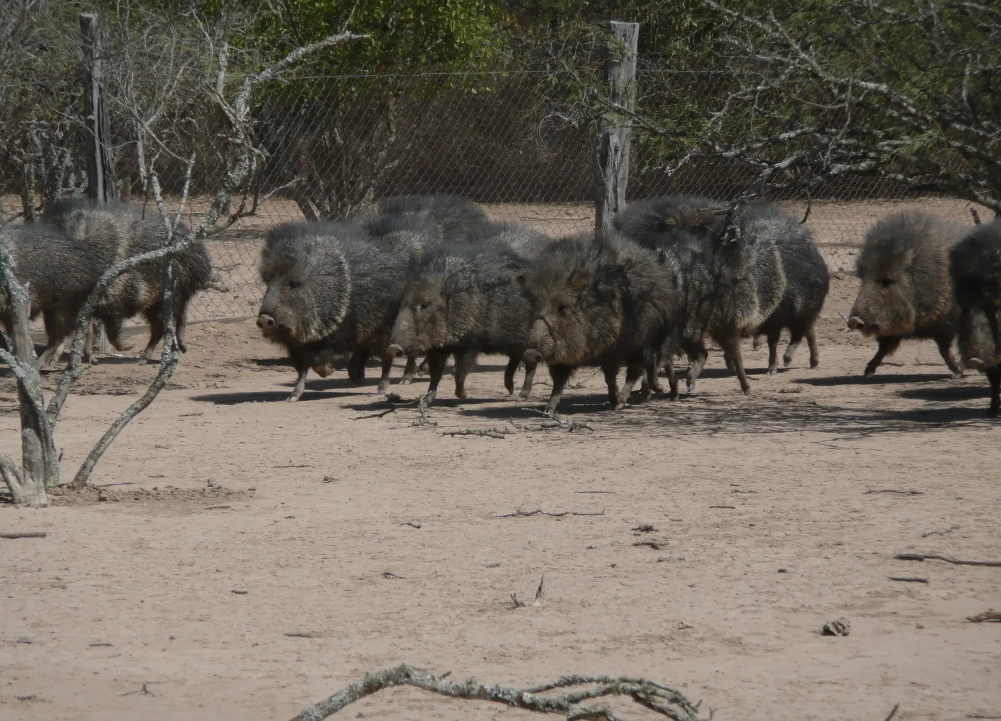 They are territorial animals with home ranges which can be over 1000 ha. They maintain these territories using scent glands on their backs which they rub against objects. Chacoan Peccary herds are usually made up of between one and nine animals. They are most active around sunrise and throughout the day, but become inactive around dusk. They are sociable, and communicate through various sounds including grunting and chattering of the teeth.