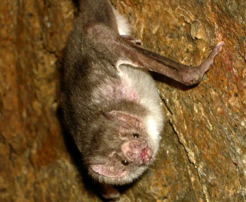The fur of the vampire bat varies in colour, through golden or reddish brown down to darker greys.