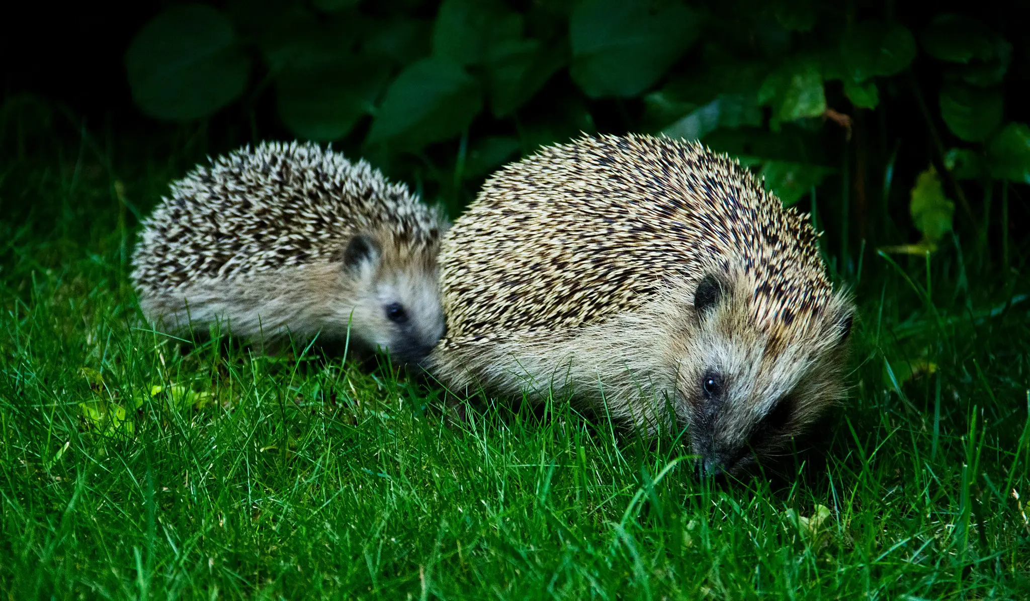 Hedgehogs are nocturnal. They can travel up to 2 km each night while foraging for food. Hedgehogs are omnivores and also opportunistic hunters, they feed on a wide variety of insects such as beetles and caterpillars and also earthworms, snails, slugs and berries.