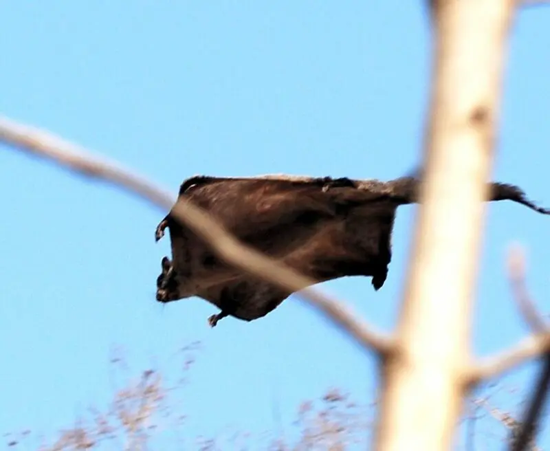 The Indian Giant Flying Squirrel is one of the largest flying squirrels, similar in size to the Red Giant Flying Squirrel found in East Asia at about 43cm long with a 50cm tail. They have a rufous coat, grey underparts, and large, round eyes. Their flying membrane extends from their wrists to their ankles, which enables them to glide from tree to tree.