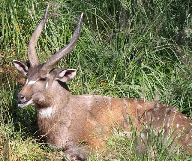 Due to their specially crafted paths through swamps, Sitatunga are easy to catch by setting snares, which is causing overhunting to severely reduce numbers outside protected areas. They are hunted for bushmeat in West Africa and for trophies in northern Botswana.