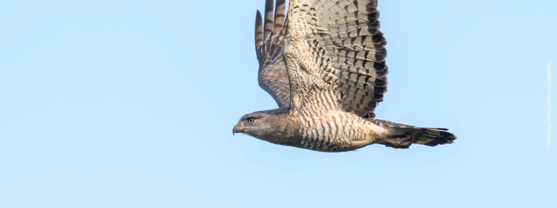 The Southern-banded Snake-Eagle is a solitary, secretive but also rather noisy raptor, frequently giving a fast high-pitched “ko-ko-ko-ko-kaw” call, either while perched or in flight.